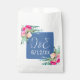 Personalised wedding favour bags with couple's initials with pretty pink floral accents and blue centre with white font. Elegant floral wedding theme.
