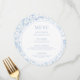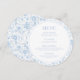 Step into timeless elegance with our classic bohemian spring/summer round wedding menu card. Featuring a light blue chinoiserie pattern inspired by floral porcelain, this sophisticated design adds a refined touch to your celebration. Perfect for rustic, bohemian, or outdoor weddings, it beautifully enhances your wedding dining experience.