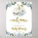 Lovely blue floral watercolor, faux foil calligraphy, pumpkin fall-themed baby shower welcome sign. Easy to personalise with your details. Please get in touch with me via chat if you have questions about the artwork or need customisation. PLEASE NOTE: For assistance on orders, shipping, product information, etc., contact Zazzle Customer Care directly https://help.zazzle.com/hc/en-us/articles/221463567-How-Do-I-Contact-Zazzle-Customer-Support-.