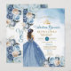 Blue Quinceañera 15 Anos Flowers Gold Crown Glitter invitation