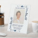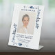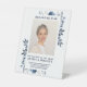 An elegant navy blue floral wedding memorial pedestal sign featuring a photo of the loved one and your personalised poem. Designed by Thisisnotme©