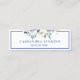 This name card features blue and white watercolor florals. You can personalise with a name and year