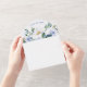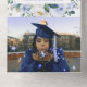 This photo graduation announcement card features blue and white watercolor florals with all the graduation party details in the centre.