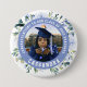 This photo button design features your graduation photo surrounded by blue flowers. A solid blue frame showcases your graduation year and your name.