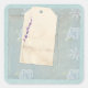 Pretty pale blue background, faint floral pattern and old parchment style label with a little sprig of lavender in a simple collage design.