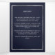 An elegant tri-fold program. A navy blue background, a faux silver frame, blue florals and space for a photo. Personalise and add name, dates and your text.