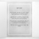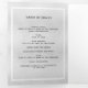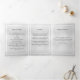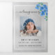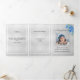 An elegant tri-fold program. A faux silver background, a white frame, blue forget-me-not flowers and space for a photo. Personalise and add name, dates and your text.