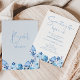 Something blue before I do bridal shower invitation featuring a lovely blue floral arrangement on the base with some blue berries. This something blue bridal shower invitation also features a modern calligraphy text heading in blue.