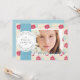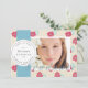 This natural and elegant graduation party invitation features your photo with a blue ribbon and a stamp design on a beige background with floral patterns in dark pink. The reverse side features light blue background with faux gold check patterns. Change the background colour and personalise it for your needs. You can find matching products at my store.