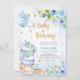 Blue Floral Tea Party Baby Shower Invitation