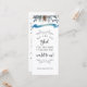 Welcome your travelling guests with style! Area in the back for you to add any kind of thank you message, weekend activities, shuttle information or details you like. Elegant watercolor blue floral with ribbon and phrase "The Adventure Begins . Modern graceful Calligraphy details in both front and back. Part of our "Rustic Blue Mountains" wedding and events collection.