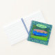 A vintage camper trailer parked on bright green grass and a small forest in the background. The peaceful scene has been transformed with bright colourful drama. Beautiful sapphire and periwinkle blues, mauve pink, and chartreuse turn the cute camper into a vibrant work of art. A fun vintage floral pattern background, in coordinating blues, provides the grand finale for this useful gift. A template for a name, initials, or other text is above the sweet retro camper. The design is the same on both the front and back of this notebook, including another name template. This book would make a wonderful travel log gift for someone who loves camping and roadtrips.