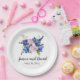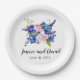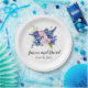 Beautiful blue watercolor floral design personalised wedding white paper plates perfect for spring and summer weddinngs.