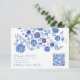 Blue Floral Wedding RSVP QR Code response Card