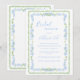 Beautiful blue watercolor whimsical tiny floral frame with green watercolor frame surrounding lovely fonts and scripts done in coordinating colours bridal shower invite. A perfect wedding bridal invitation for any season.