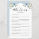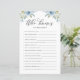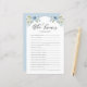 Who knows the bride best? Answer these questions to find out! Add this fun and playful botanical shower game card to your event. It features watercolor illustrations of off-white and blue roses and peonies with a greenery accent. Personalise by adding back texts. This floral bride trivia game card is perfect for weddings, birthdays, bridal showers and baby showers.