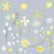 Modern watercolor yellow, green and white botanical wild flower pattern on a pale blue background for a fresh summer feel. Original art by Nic Squirrell.
