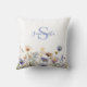 Blue floral wildflower personalised throw pillow. Easy to change the text.