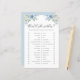 What will the mum-to-be do? Add this fun and playful botanical baby shower game card to your event. It features watercolor illustrations of off-white and blue roses and peonies with a greenery accent. Personalise by adding back texts. This floral guessing game card is perfect for winter and It's a Boy baby showers.