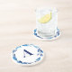 Watercolor design features lovely blue floral wreath and initial 'A' in centre