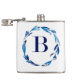 Blue Floral Wreath 'B' Hip Flask