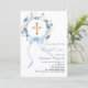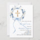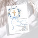 Blue floral wreath cross bow boy baptism invitation