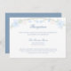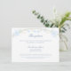 Reception card for the Blue Floral Wreath Collection. The design evokes a sense of spring and new beginnings with its pastel hues. Blue watercolor blossoms, vines, and leaves frame the text on a white background. For contrast, the back of the card is a deep, dusty blue. Try this design on the elegant paper options, such as linen or pearl. The soft paper will enhance the delicacy of the blossoms. Perfect for a garden or springtime wedding.