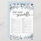 This elegant Baby Word Scramble shower game from our Pressed Florals - Boy Baby collections features vibrant dusty blue watercolor florals with delicate greenery vines, paired with a modern script font. Perfect for any season. To make advance changes, select Personalise -> Edit using Design tool.