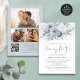 Dusty Blue Florals 3 Photos on the back, QR Code Wedding Evening Party. Beautiful summery light blue florals are at the top. Add your QR code to your wedding website on the back or delete this if not required. Simply change the URL to the URL of your chosen page of your wedding website and the QR code in this design will automatically update. An informal set typography in black for the main heading Evening Party complementing the rest of the text which you can easily personalise. Replace the 3 sample pictures on the back with your own.