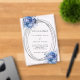 For a winter wedding. A clear, transparent background decorated with blue florals, roses. A faux silver looking frame. Personalise and add your names and details.