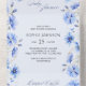 All in One Baby Shower Invitation asking for books instead of cards as well as a tear-off diaper raffle ticket for your guests to bring to your baby shower. This trifold invite features pretty blue watercolor floral design and elegant calligraphy. The inside is framed with blue flowers and both the book request poem and the diaper raffle poem are editable, along with the invitation template wording. You can even add your return address on the front.