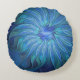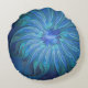 Blue Flower Fantasy Pattern, Abstract Fractal Art Round Cushion
