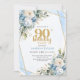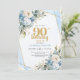 Blue Flower Gold Accent 90th Birthday Party Invite