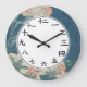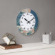 Japanese or Chinese Number Clock with vintage nature art depicting a blue floral pattern with flowers in a flowery design. Pretty flower themed traditional art from Japan with kanji symbols for the numbers 1-12 in Japanese or Mandarin or Cantonese, as they are the same I believe.
