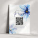 Elegant floral design featuring modern handwritten style script, QR CODE and watercolor blue Flowers on white background.The text can easily be personalised for a unique one of a kind design for your special day.