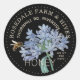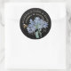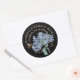 Realistic bee image alongside a blue flower with a dotted border on black label. Personalise with your name, address, honey net weight. Common honey net weight conversions: 8oz (227g), 12oz (340g), 16oz (454g), 32oz (907g), 5lb (2.27kg).