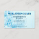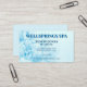 A blue flower on a sky-blue background creates a beautiful and professional business card for a masseuse at a spa. Could also be used for a yoga instructor, a wedding or event planner, or a florist.