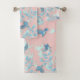 blue flowers and bird ,Background light rose colou Bath Towel Set