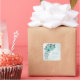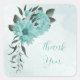 Unique wedding thank you sticker featuring romantic blue flowers and green leaves.