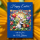 Blue Flowers Easter Rabbit Stained Glass Holiday Card