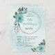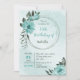 Unique birthday party invitation featuring romantic blue flowers and green leaves.