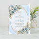 Set the tone for an unforgettable celebration with this elegant watercolor wedding invitation, beautifully designed with dusty blue florals, soft white peonies, and delicate eucalyptus
