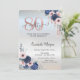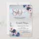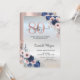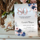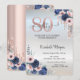 Blue Flowers Rose Gold Drips Silver 80th Birthday Invitation
