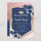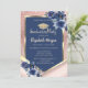Blue Flowers Rose Gold Glitter Graduation Invitation