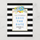 Blue flowers & stripes wedding Save the Date Announcement Postcard