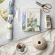 Blue Flowers Sunflowers Dragonfly Script Decoupage Wrapping Paper