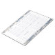 This is a perfect planner for busy families... easy to use and well organized. Each page rips off after use and the new page is ready for the next week. Clear print and personal monogram is fun.