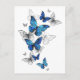 Flying Blue Butterflies morpho and white butterflies on a light abstract background. Morpho. Design with blue butterflies morpho.