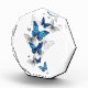 Flying Blue Butterflies morpho and white butterflies on a light abstract background. Morpho. Design with blue butterflies morpho.