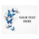 Flying Blue Butterflies morpho and white butterflies on a light abstract background. Morpho. Design with blue butterflies morpho.